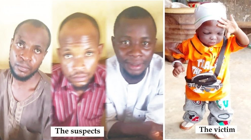 The suspects identified as Aliyu Musa, Aliyu Taiye, and Wasiu Babatunde, allegedly cut off the one-year-old boy, Taiwo Bisiriyu’s head and two palms for rituals.