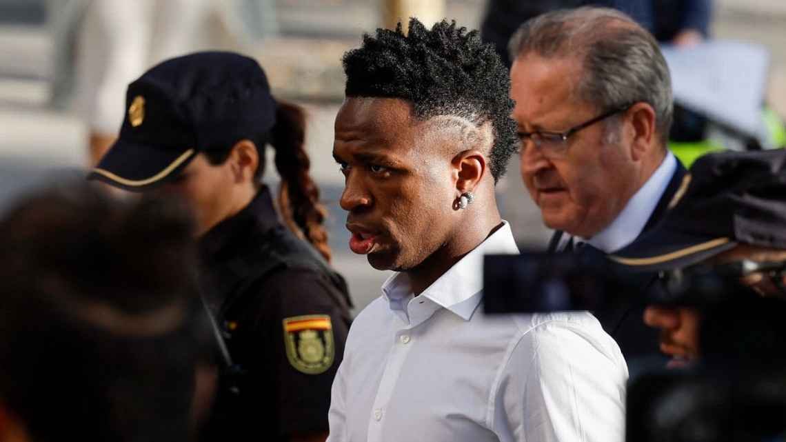 Vinícius Júnior appeared in court to testify in the case against the Valencia fans. OSCAR DEL POZO/AFP via Getty Images