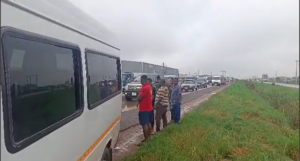 The accident resulted in a traffic jam on the motorway, forcing vehicles to use the shoulder of the road towards Tema.