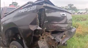 An accident has occurred on the Tema-bound side of the Accra-Tema motorway involving a Toyota Tundra, a Benz 207 passenger vehicle, and a trailer truck.