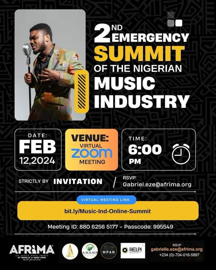 In line with its commitment to finding further lasting solutions to critical challenges in the music industry, all is set as the All Africa Music Awards- AFRIMA Music Business Summit in partnership with the Performing Musicians Employers Association of Nigeria (PMAN), Record Label Proprietors Initiative (RELPI), Association of Music Artist Managers of Nigeria (AMAMN) and Music Publishers Association of Nigeria (MPAN) holds the 2nd emergency summit of stakeholders on Monday, February 12, 2024.