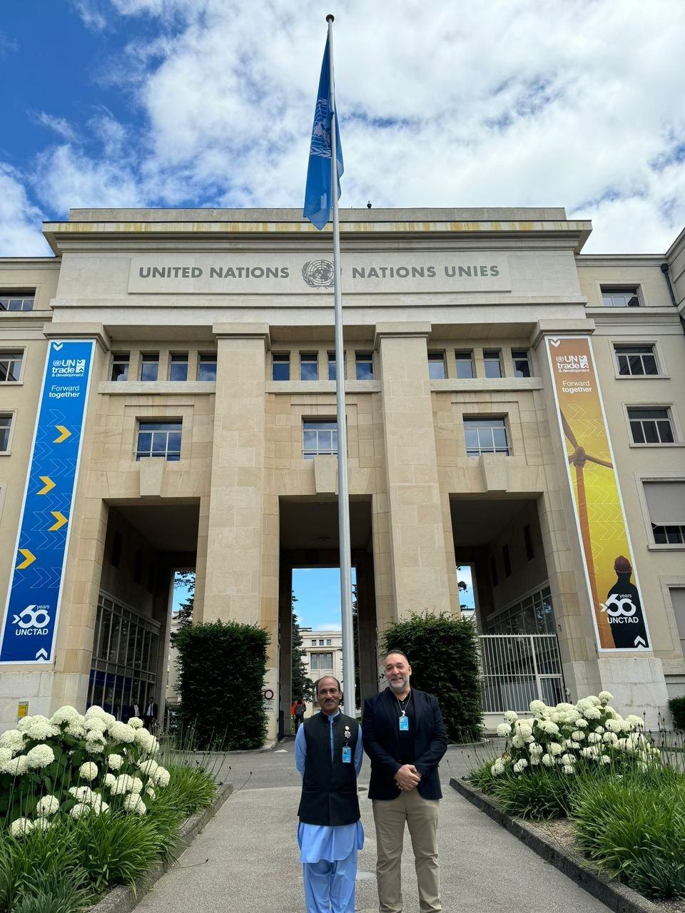 Ambassador Zein Abu, along with Ambassador Dr. Muhammad Shahid Amin Khan, IHRC Chief, today visited the United Nations (UN) HQ at Geneva, Switzerland, a release issued by IHRC Liason Secretariat Geneva has said.