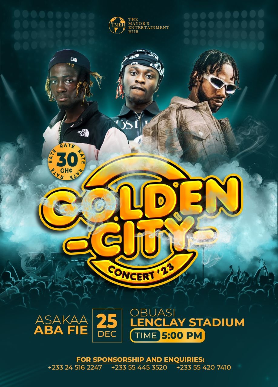 Dubbed ” THE GOLDEN CITY CONCERT 2023″, the event set to be organised by the Mayor’s Entertainment Hub will witness music enthusiasts throng the Obuasi Len Clay sports stadium on 25th December 2023.
