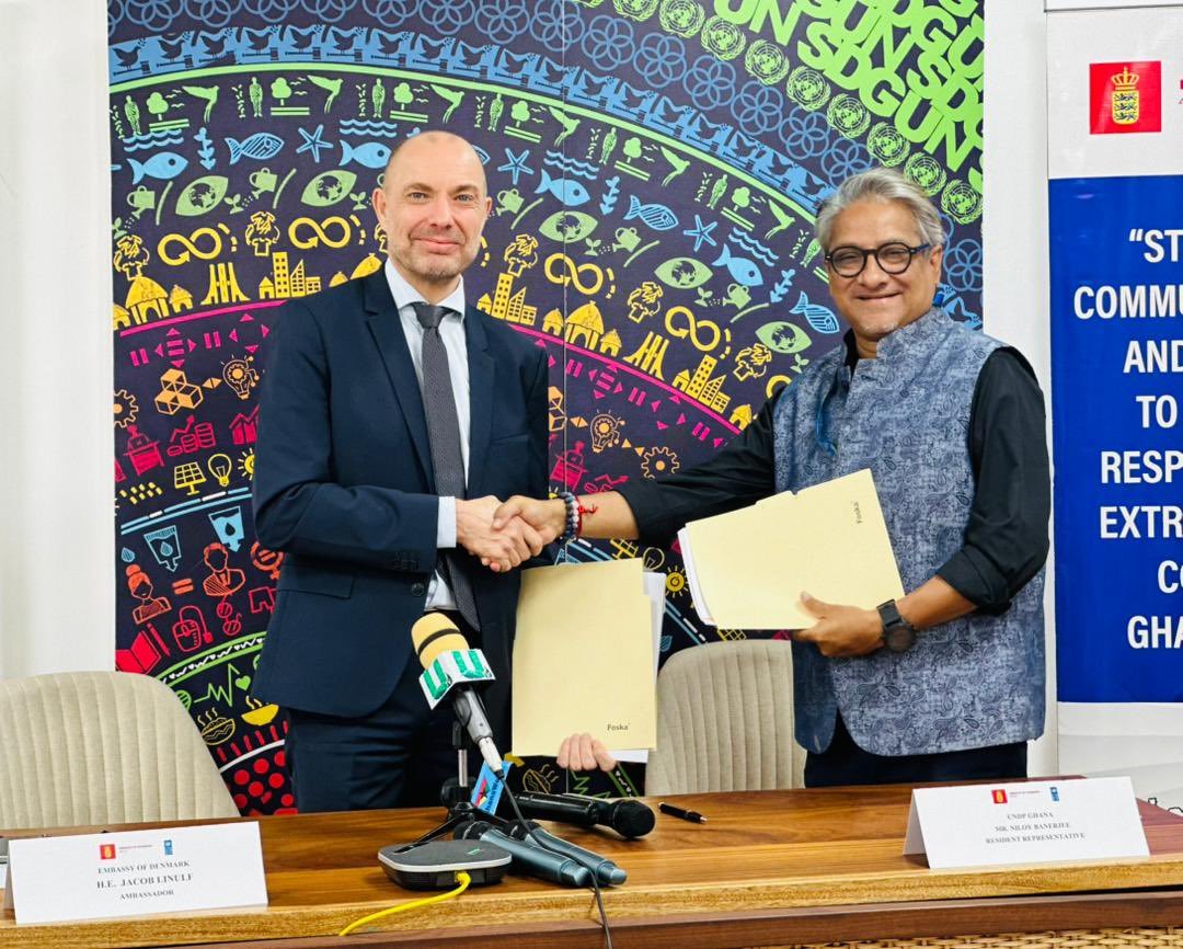 The agreement was signed by Niloy Banerjee, UNDP Resident Representative in Ghana, and Jakob Linulf, Ambassador of Denmark to Ghana. Ambassador Linulf reaffirmed Denmark’s commitment to regional peace and stability, stating:
