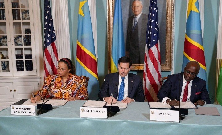 Signing the agreement were the Foreign Ministers of DR Congo and Rwanda. The agreement was signd at a ceremony with the U.S. Secretary of State Marco Rubio.