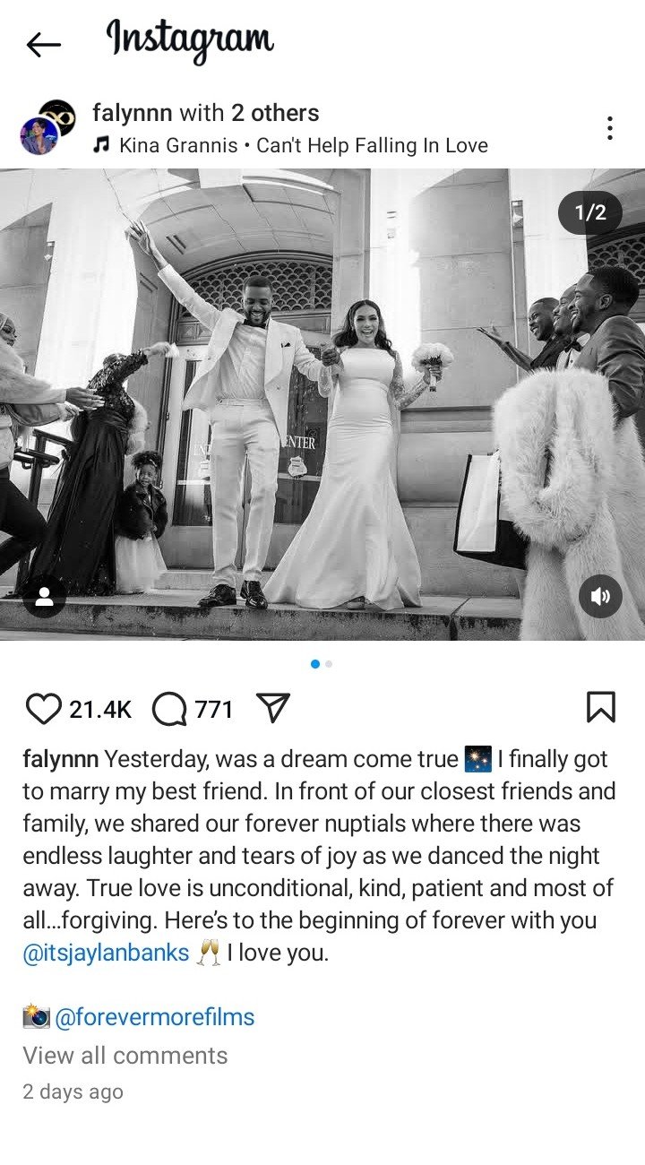 American Reality TV star Falynn Pina and her partner Jaylan Banks have shared a double dose of good news with their fans. The couple, who have had a tumultuous past, revealed that they got married on Friday, December 7, 2024 in Atlanta.