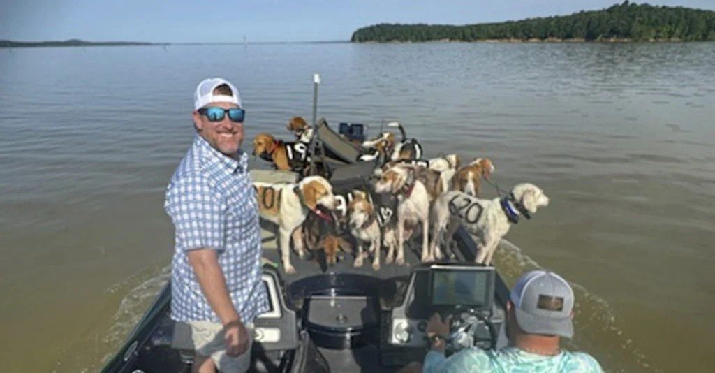 A group of fishmen in the US has saved 38 exhausted and struggling dogs from drowning in the Mississippi Grenada Lake.