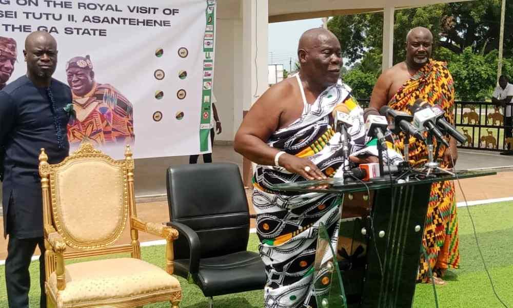 led by Nii Boi Abbey said in a news conference at the Ga Mantse Palace on Thursday June 6, that the visit, the first ever by the Ashanti King marks a major milestone in the history of the two kingdoms.He told the media “The visit will be crowned with a special durbar hosted by King Tackie Teiko Tsuru II , the Ga Mantse.