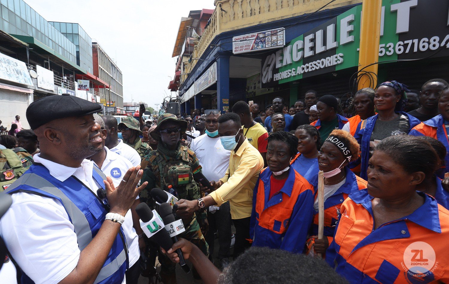 Accompanied by senior officers of the Greater Accra Regional Coordinating Council (GARCC) and Asafoatsemei of the Ga State, he visited various locations, including Rawlings Park, CMB, Makola, and Tudu, to assess the progress of the exercise.