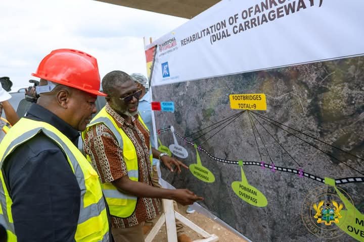 “As government commits to paying you well, you must move faster and use quality materials,” the President said. He also directed the contractor to strengthen traffic management to keep goods and people moving smoothly along the critical Accra–Kumasi corridor.