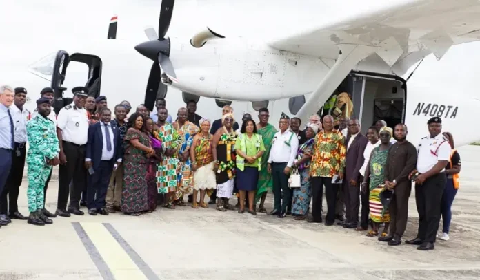 The flight departed from Kotoka International Airport (KIA) on September 25, 2025, at 14:40, carrying 19 passengers aboard a Cessna SkyCourier aircraft. The journey lasted approximately 30 minutes, returning to Accra around 16:35.