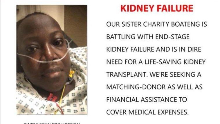“Our sister Charity Boateng is battling with end-stage kidney failure and is in dire need of a life-saving transplant,” the family said in a statement.