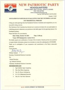 The New Patriotic Party (NPP) has announced that the balloting exercise for its January 31, 2026, presidential primaries will be held on Friday, October 10, 2025, at the party’s national headquarters in Asylum Down, Accra.