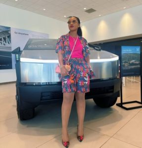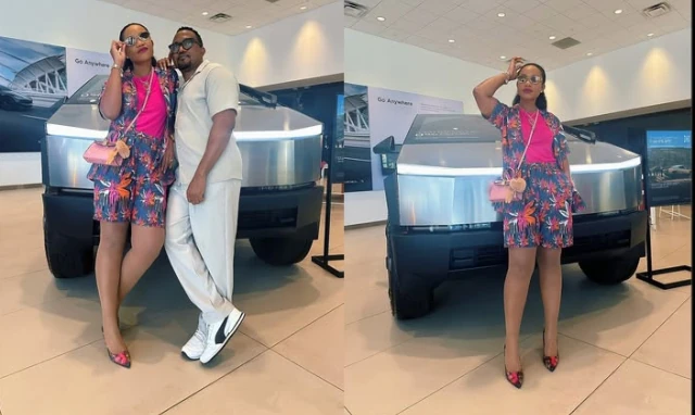 Nigerian gospel singer Ada Ehi and her husband, Moses Ehi, are celebrating the acquisition of a new Tesla Cybertruck. The couple shared the exciting news on social media, posting photos of themselves alongside the futuristic-looking vehicle.