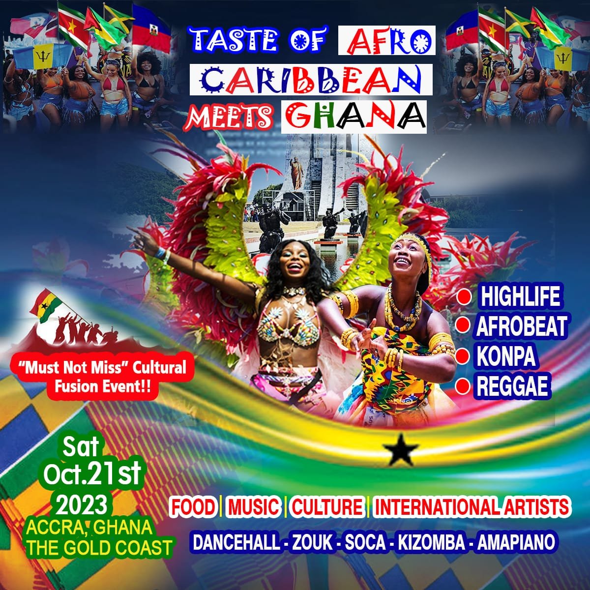 It is scheduled for *Saturday October 21, in Gold Coast, Accra Ghana. This event seeks to showcase Ghanaian, Haitian, and Caribbean culture on one platform*