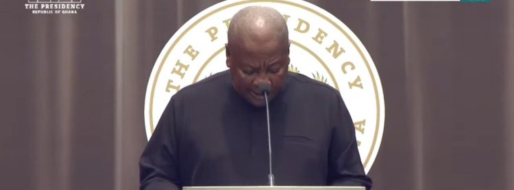 President John Dramani Mahama delivering a tribute at the state funeral for the eight victims of the crash at the Black Star Square in Accra on Friday, August 15, 2025