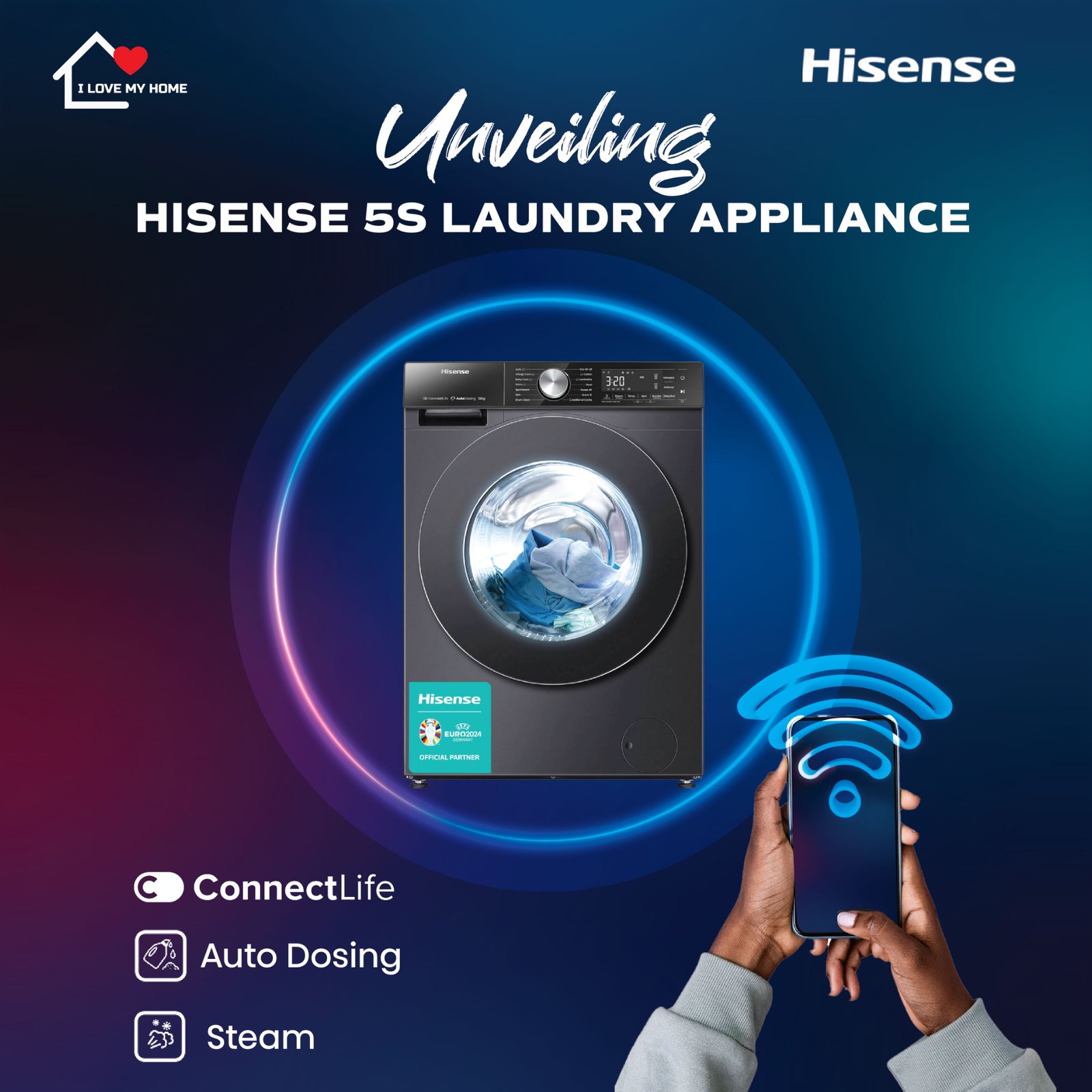 The Hisense 5S Laundry Appliance is packed with the latest technology, including ConnectLife App, Auto Dosing and High-temperature steam allowing consumers to wash smarter, and with ease.