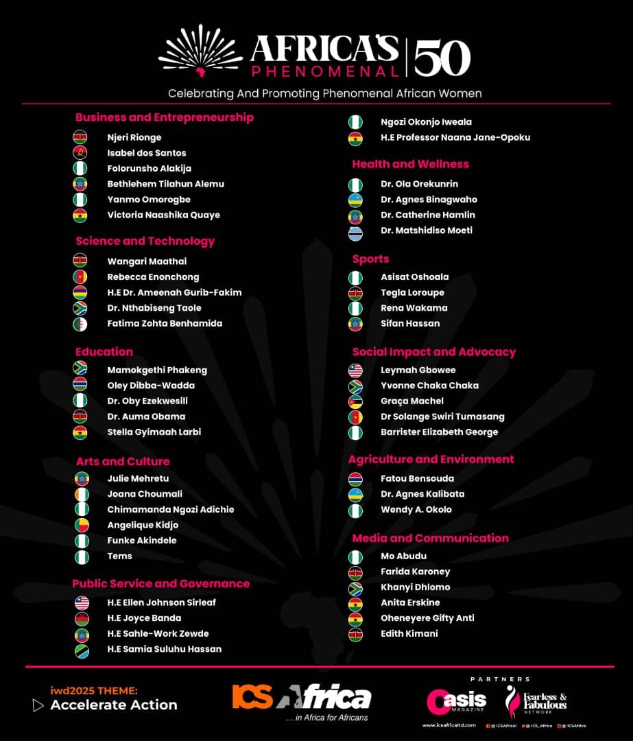 ICS Africa releases maiden list of Africa’s Top 50 Phenomenal Women to mark International Women’s Day