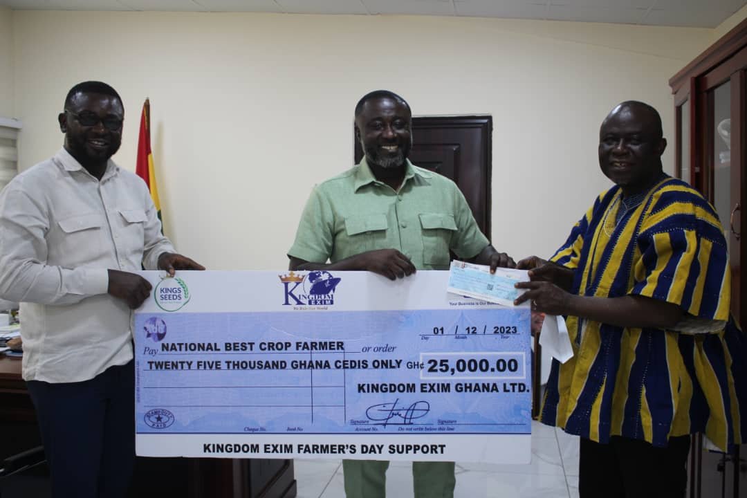 A leading agro-commodities trading firm, Kingdom Exim Group, has again fulfilled her commitment to supporting and appreciating hard working farmers in Ghana. The support which comes in the form of cash donations, T-shirts and other farm inputs were donated to the National headquarters of the Ministry of Food and Agriculture (MoFA), selected Regional Coordinating Councils and MMDAs participating in awarding farmers who have demonstrated selflessness and dedication to feeding the Ghanaian populace.