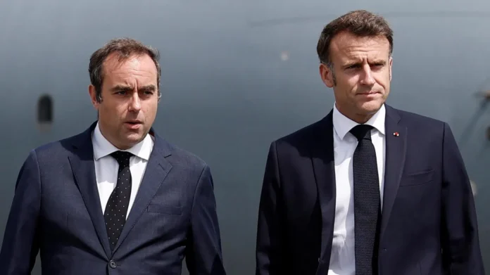 Sébastien Lecornu (L) served as Emmanuel Macron’s armed forces minister for three years