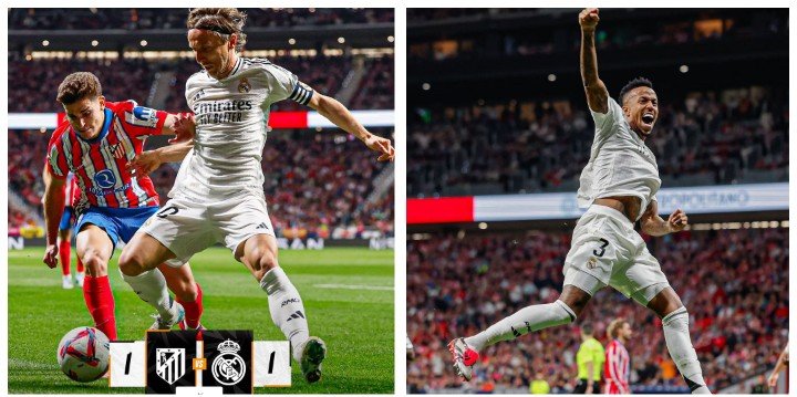 The match ended in a 1-1 draw, with Èder Militào scoring for Real Madrid and Angel Correa equalizing for Atletico Madrid in the 96th minute.