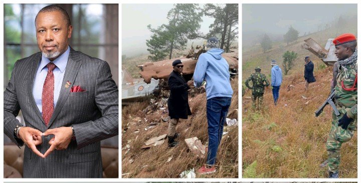 Saulos Klaus Chilima (left) died in a plane crash on Tuesday, June 11, 2024. The photo collage also shows the area where his plane crashed