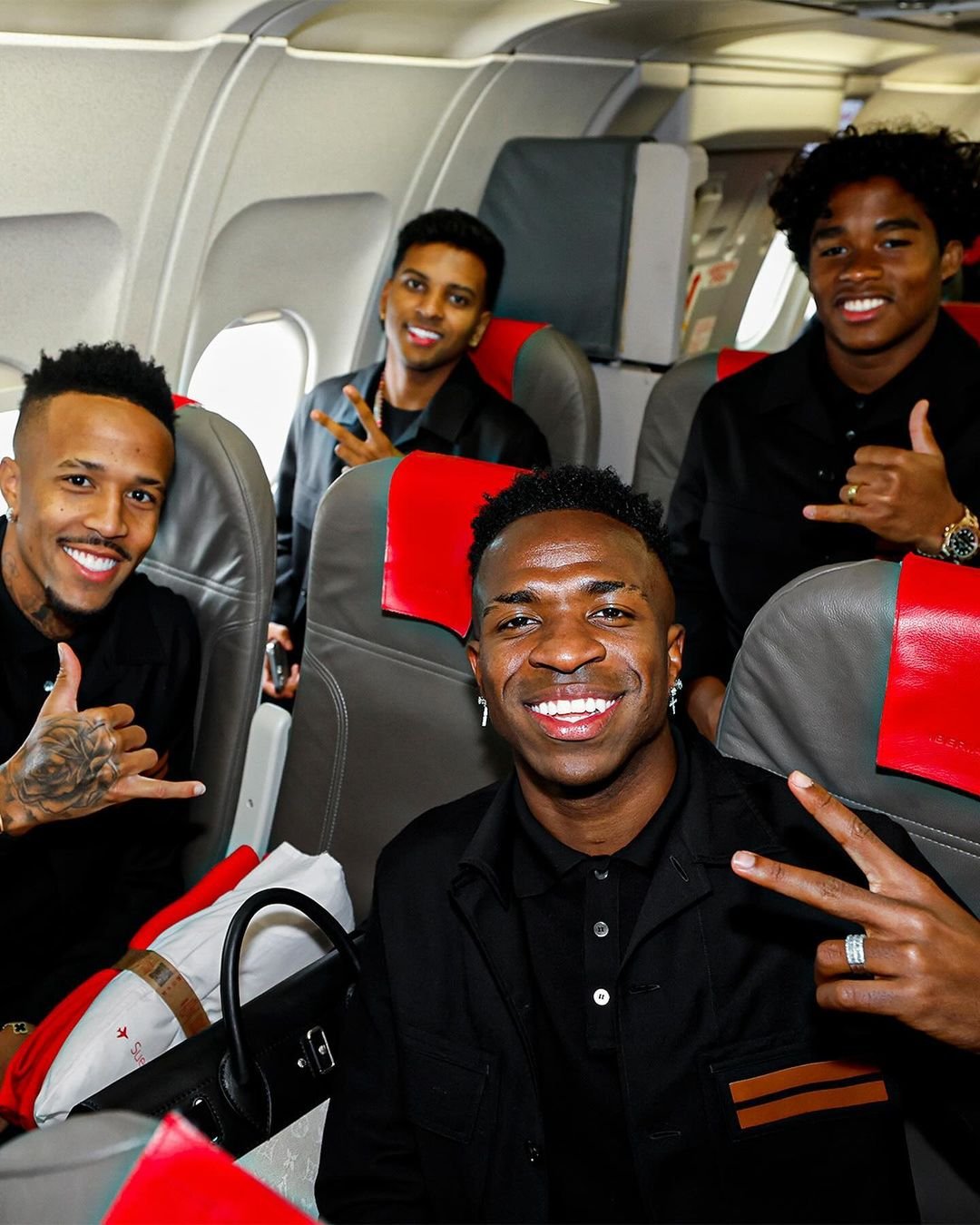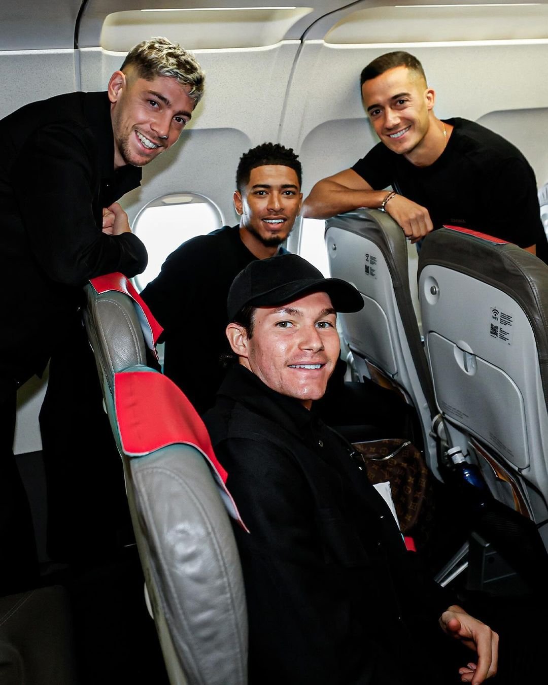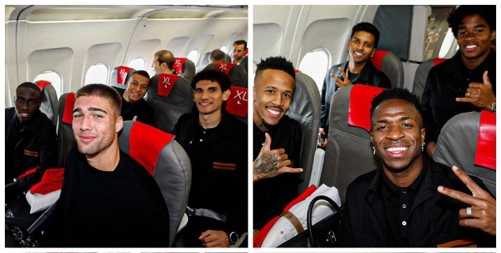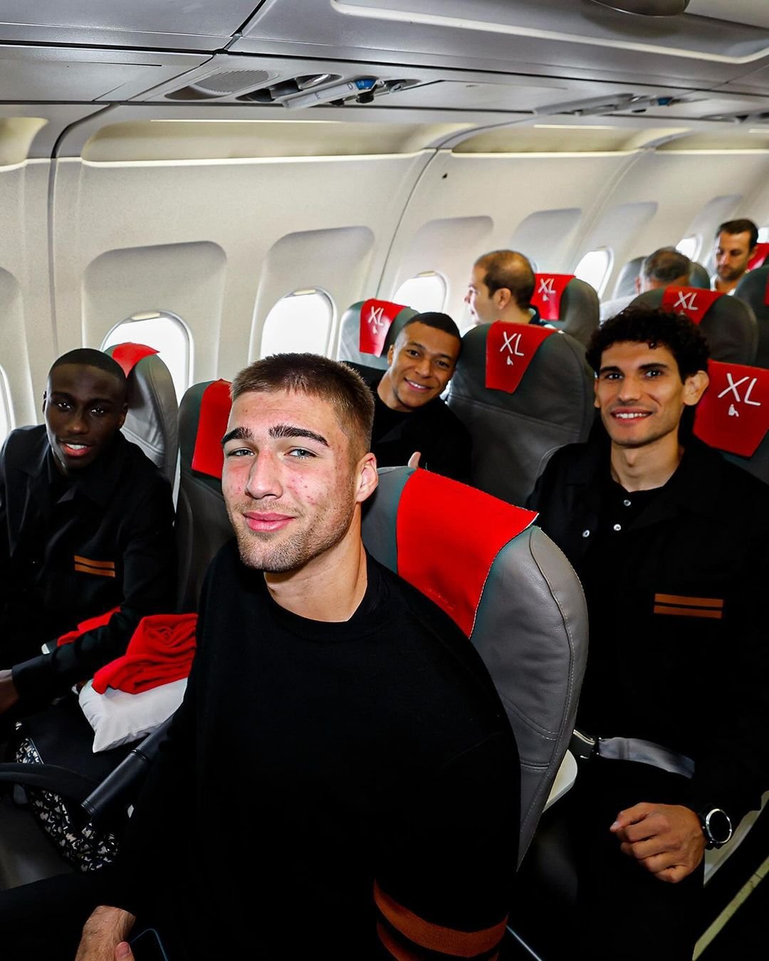 Kylian Mbappé has been pictured on a flight with the rest of the Real Madrid squad enroute to France for their Uefa Champions League clash with French side, Lille.