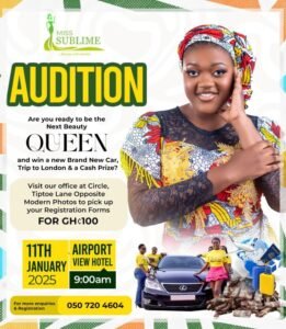 Accra, Ghana – A brand-new beauty pageant, Miss Sublime, is set to make its debut, offering young Ghanaian women an exciting platform to showcase their talents and aspirations. Auditions for the first edition will be held on Saturday, January 11, 2025, at the Airport View Hote, starting at 9:00 AM.