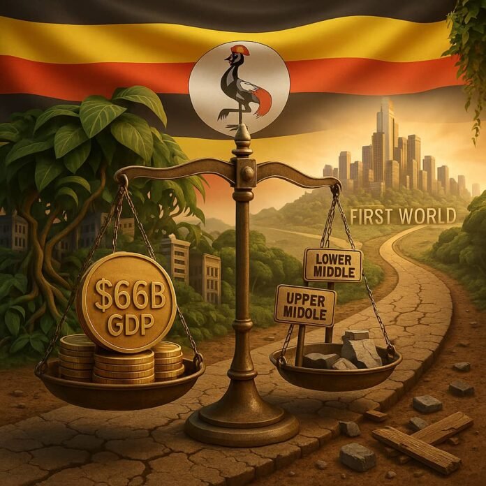 At nomination Grounds, on this 23rd day of September 2025, President Yoweri Kaguta Museveni made a grand assertion. He declared that Uganda has graduated from the realm of least-income nations, through lower-middle income, now to “high middle income,” and is marching towards the “first world.” He told the nation that Uganda’s GDP has risen from $34 billion to $66 billion—a “doubling” in a single term.