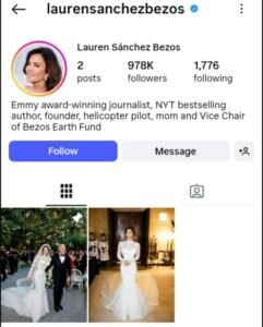 Just hours after the wedding, Sánchez made a significant change to her Instagram profile. She wiped her entire feed clean, deleting all previous posts except for two photos from the wedding. Moreover, she updated her profile name to Lauren Sánchez Bezos and changed her handle to @laurensanchezbezos, marking a new beginning in her life.