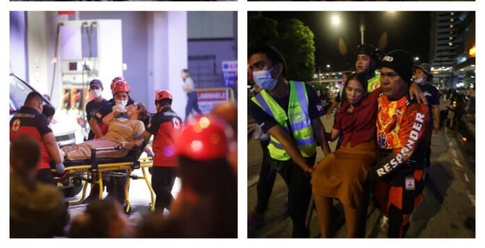 epa12418798 Injured villagers receive care in the aftermath of an earthquake in Bogo city, Cebu island, Philippines, 01 October 2025. According to a statement by the Cebu island Provincial Disaster Risk Reduction and Management Office (PDRRMO) released on 01 October, at least 61 people were killed following a 6.9-magnitude earthquake that struck off the coast of Cebu Island on 30 September. The earthquakes epicenter was located near Bogo City. EPA/JUANITO ESPINOSA