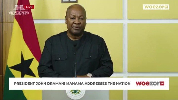 President John Dramani Mahama addressing the nation from the Jubilee House on Thursday night, August 7, 2025