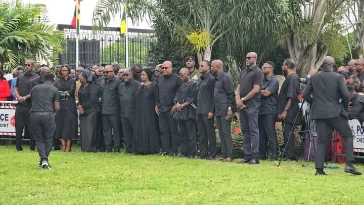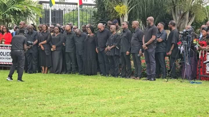 A three-day national mourning period has been declared by President Mahama to honour the deceased. As part of the observance, a wreath-laying ceremony was held at the Ceremonial Gardens of Jubilee House, the seat of government.