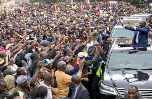 William Ruto waving to his supporters in Eldoret City