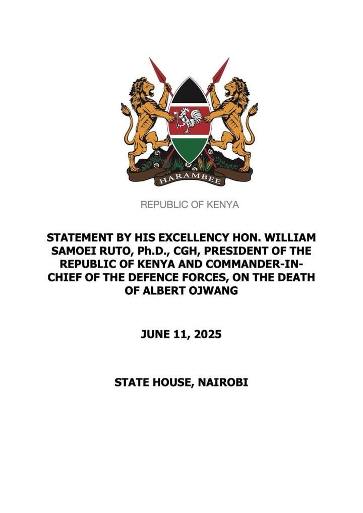In a statement issued on June 11, 2025, President Ruto says Ojwang’s tragic killing “at the hand of police, is heartbreaking and unacceptable.”