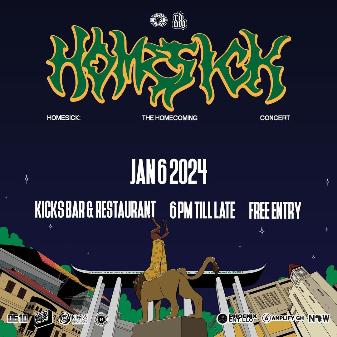 PRJCT KUMASI AND RDMG TO HOST HOMESICK CONCERT AT KICKS BAR & RESTAURANT.
