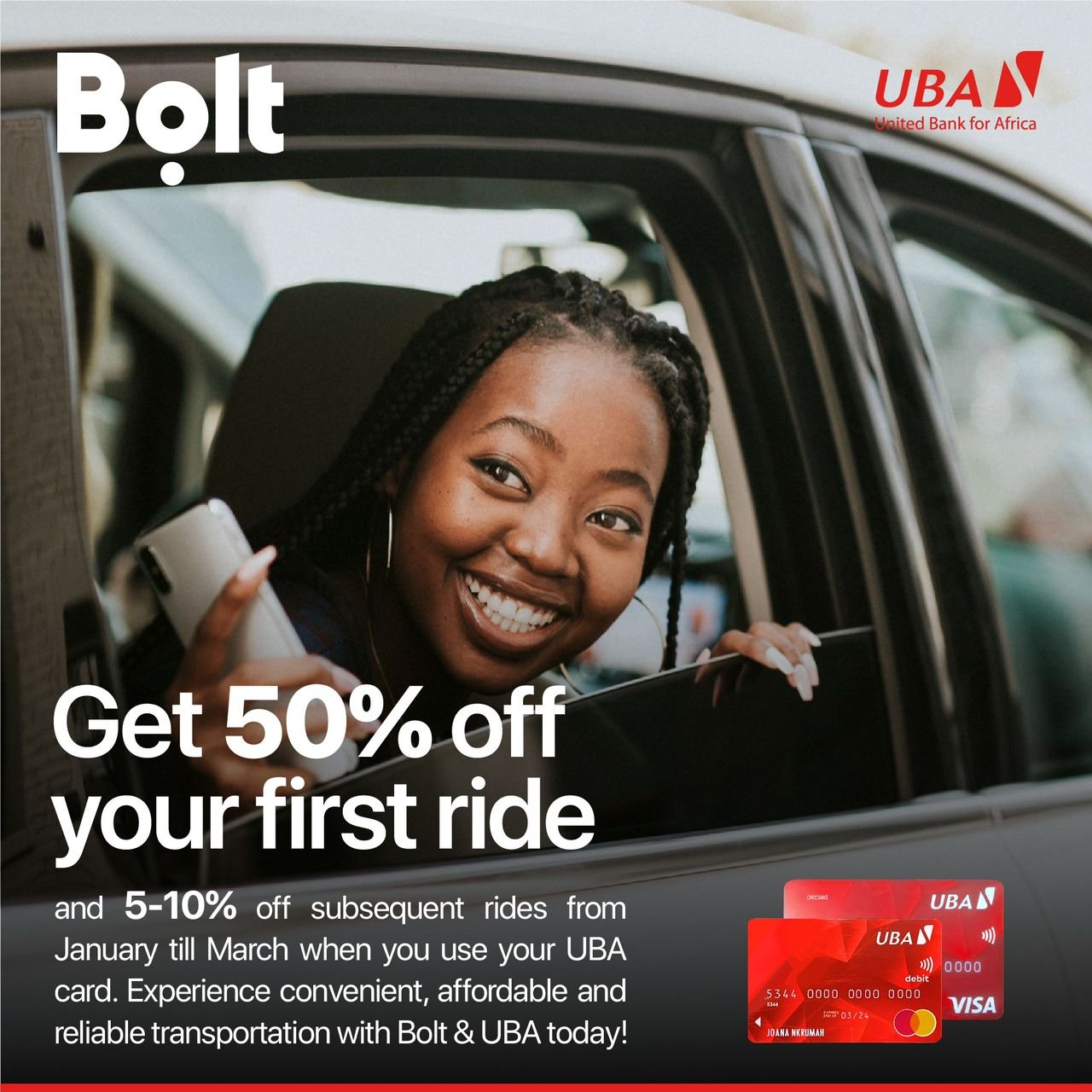 With the UBA and Bolt discounts still going strong, there’s no better time to join the ride into savings. Whether it’s a quick trip to the office, a leisurely drive through the city, or an evening out with friends, UBA and Bolt have got you covered. So, grab your UBA card, book your Bolt ride, and experience the convenience, affordability, and reliability of this partnership today!