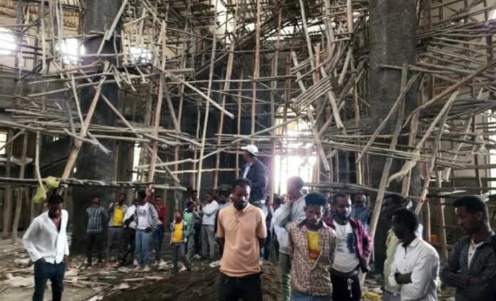 The incident occurred on Friday morning at Menjar Shenkora Arerti Mariam Church, where thousands of worshippers had gathered for the annual celebration of St. Mary. According to witnesses, many people had climbed the wooden scaffolding to view a ceiling mural when it suddenly gave way.