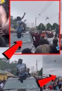 To show his love and appreciation for the fans’ support, He came out of his Toyota Land Cruiser’s sunroof to spray money into the air, which many people rushed to grab as he exited.