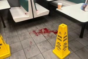 Video footage shared on social media captured the intensity of the incident, showing separate fights breaking out where individuals were seen pummeling and kicking others to the ground. Pictures of the aftermath showed blood covering the booths and floor of the fast food chain.