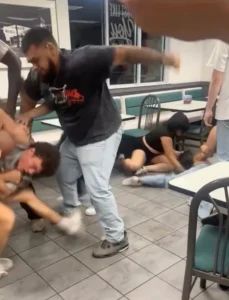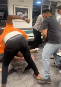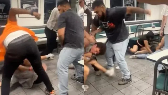Police were dispatched to the location just after 3 a.m. in response to the wild melee. Authorities confirmed that an issue with a food order being mistakenly delivered to the wrong group of patrons caused the fight to erupt.