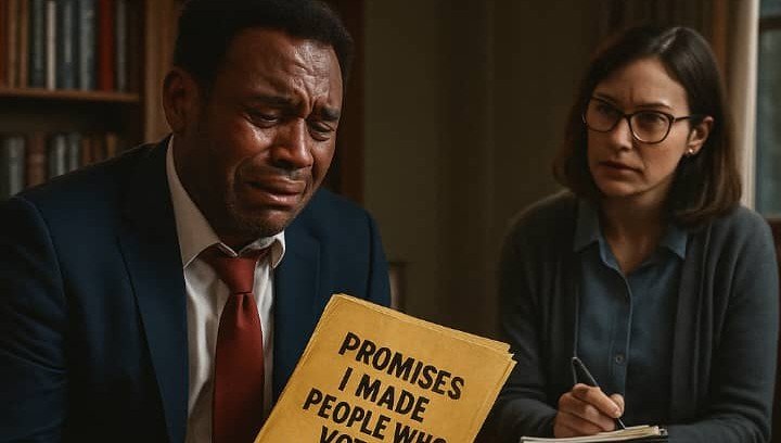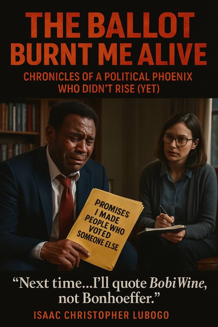A therapy room masquerading as a courtroom. Hon. Nathan Kizito walks in wearing a suit that still smells like his last campaign rally. Eyes swollen. Ego dismembered. Behind him trails a folder titled: “Promises I Made to People Who Voted Someone Else.”