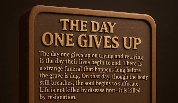 There is a strange funeral that happens long before the grave is dug. It is not accompanied by mourners or dirges; it is silent, internal, and deadly. It is the day a man or woman gives up on trying and retrying. That day, though the body still breathes, the soul begins to suffocate.