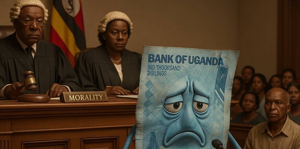 The courtroom is packed. The air is heavy. Children peep through the broken windows of justice. Elders murmur from the gallery. The two-thousand-shilling note sits solemnly in the dock, folded, frayed, blood-stained. Its ink slightly faded from being passed hand-to-hand like gossip at a funeral. The national flag drapes above the bench, barely waving—as though it, too, is tired of waving for the wrong reasons.