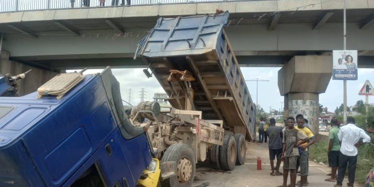 The driver of a tipper truck has died in Ghana while two other persons are critically injured following an accident at Krispol City Junction, Kasoa on Friday, June 21.
