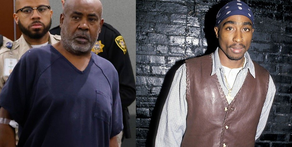 Duane Davis (L) appears in court at the Regional Justice Center, on October 4, 2023 in Las Vegas, Nevada. (Davis photo by Bizuayehu Tesfay – Pool/Getty Images). Tupac Shakur (R) (Tupac photo by Ron Galella/Ron Galella Collection via Getty Images)