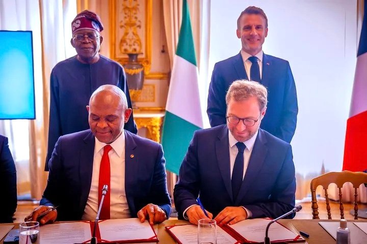 As part of President Bola Ahmed Tinubu’s state visit to France, the Chairman of UBA Group, Tony Elumelu in the presence of President Tinubu and the President of France, Emmanuel Macron, signed a landmark business cooperation agreement with the French Finance Minister, Antoine Armand. The agreement is a significant indication of support by the French Government for the development of UBA’s full banking operations in France.